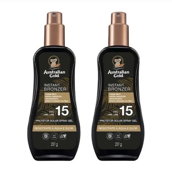 Kit com 2 protetores em spray gel. Seu corpo dourado e sua pele protegida.