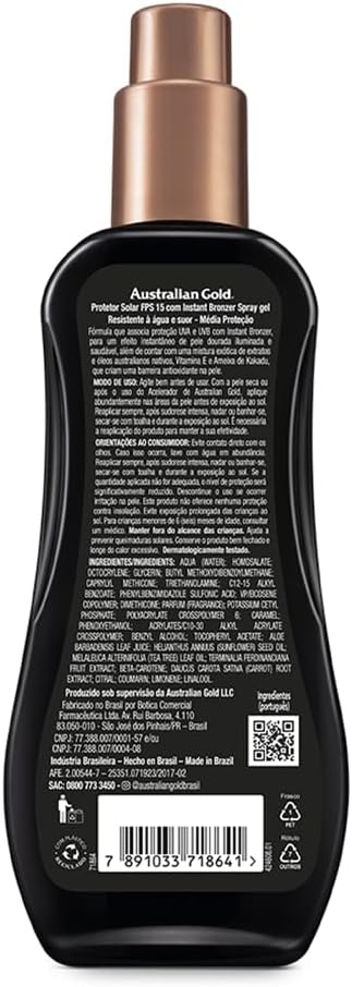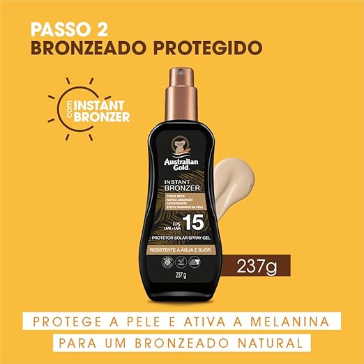 Sua fórmula com instant bronzer extratos naturais tonalizantes (nozes, abóbora e cenoura) promove um bronzeado instantâneo, que oferece uma suave coloração dourada à pele, e alta qualidade em proteção solar. Protege contra raios uva e uvb. Sua exclusiva fórmula biosine complex proporciona um bronzeado mais saudável e muito mais duradouro. Indicado para peles: fototipo 3- pele clara, olhos e cabelos escuros – bronzeia facilmente, não fica vermelha. Pouca sensibilidade.